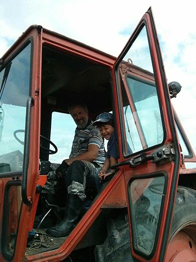 Opa Werner und Lucian bei der Heuernte